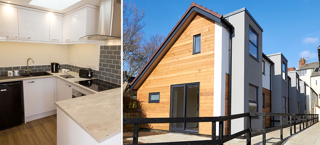 By partially demolishing the hall to create a new ‘street’, 4 modern cottages were developed in a space previously consented for a single two bed house conversion.